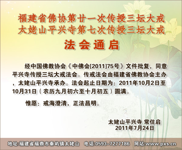 2011太姥山平兴寺传授三坛大戒法会通启